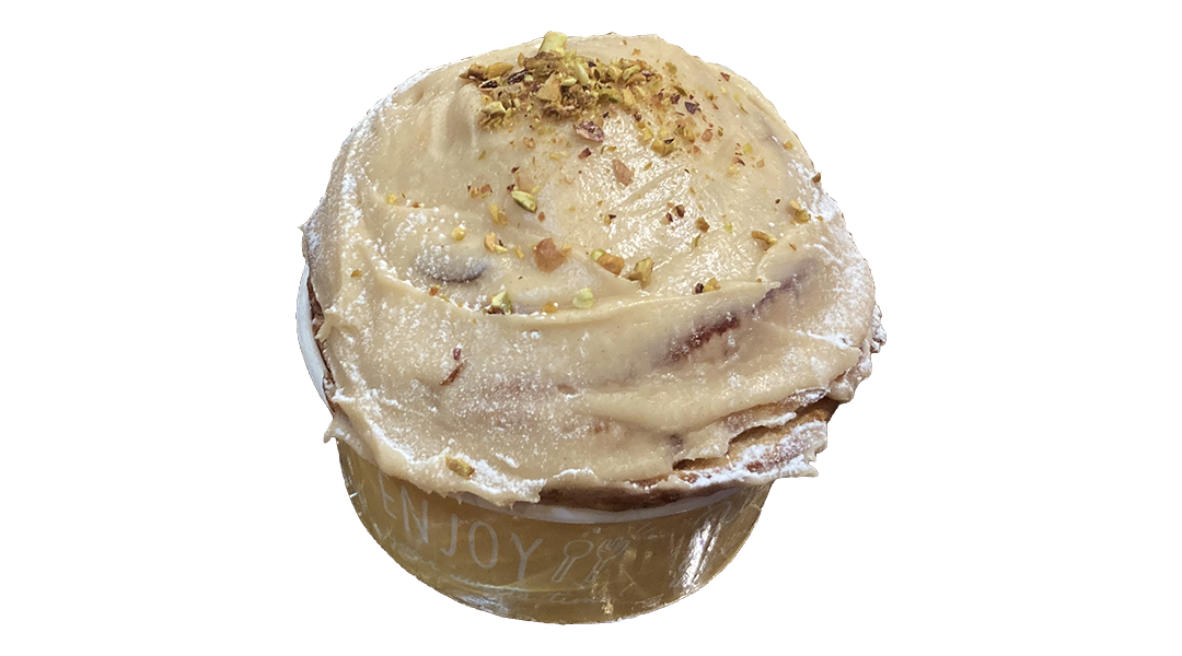 生地の中に渋皮の栗と渋皮栗のなめらかクリームたっぷりの秋を感じる一品。ナッツが香る甘いプラリネのアイシングをのせて。