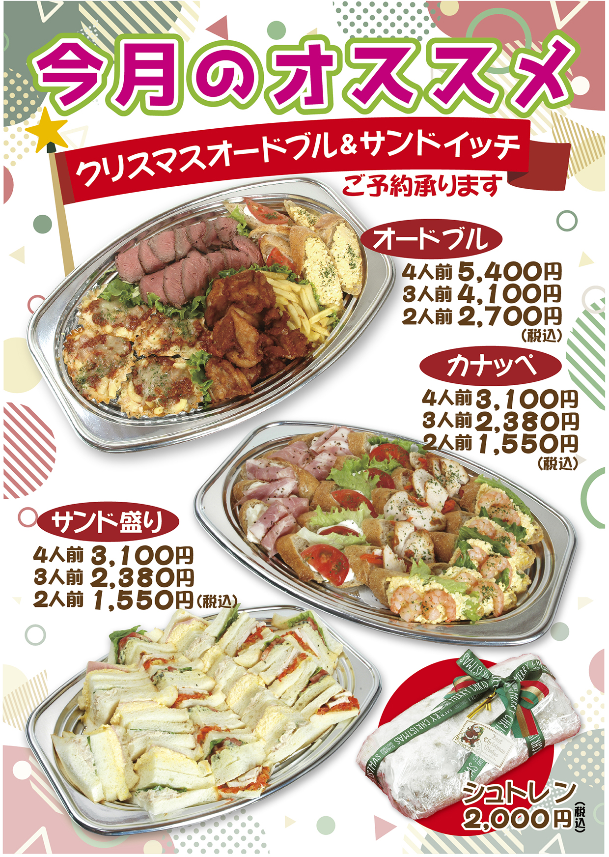 クリスマスでの集まりに、ペシュのサンドイッチ盛合せ♪
